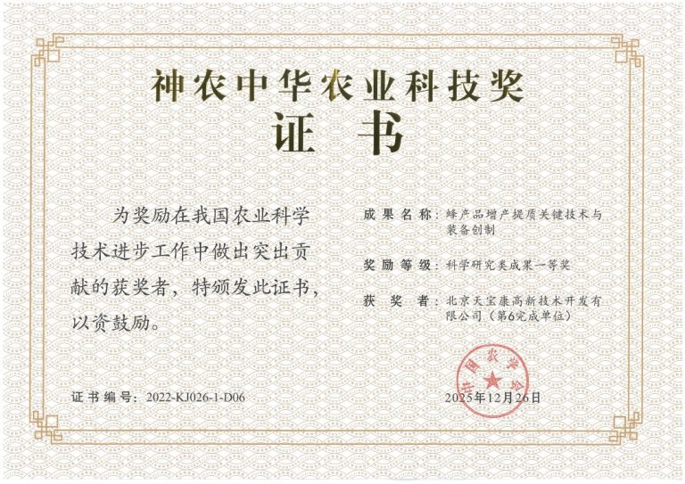 天宝康43+蜂蜜被评为优质成熟蜂蜜